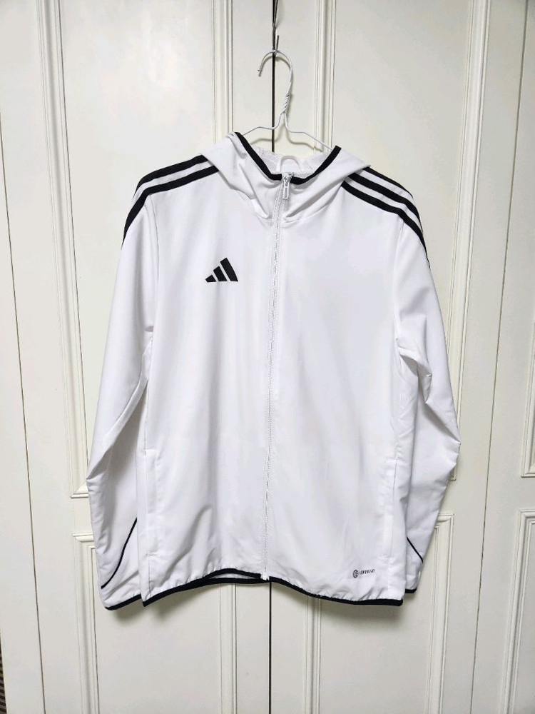 아디다스 티로23 리그 윈드브레이커 자켓 화이트 안감 이중 메쉬소재로 되어있구요. 상처,이염없이 깨끗해요 표기사이즈160이고 성인95(M)사이즈 정도 됩니다. 아래에 실측사이즈 참고해주세요. 실측사이즈(단면/cm) - 가슴50 총장66 (재는방식에 따라 약간의 오차가 있을수 있습니다) ✅️ 구매 전 확인해주세요 - 중고거래 특성상 단순변심/미세한 사이즈오차 사이즈미스로 인한 교환 및 환불은 안되니 신중히 구매 부탁드립니다. - 결제된 상품은 우체국택배를 통해 배송되며, 평일 오후 3시 이전 주문건은 당일 발송 됩니다. - 구매외 질문,에눌 및 요구사항 바로 차단합니다.