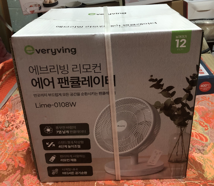 *에브리빙 리모컨 에어 팬큘레이터 미사용 새제품, 7엽 날개, 4단계 높이조절, 리모컨 채용, 어디서든 공기순환, 좌/우 자동 회전, 부드러운 자연풍/수면풍, 7시간 타이머 설정