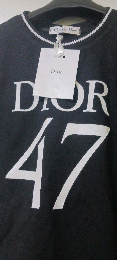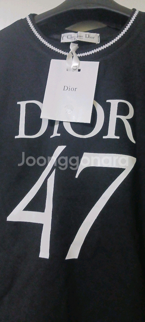디. 올 47번 로고 반팔티셔츠예요. 태그가 달려있는 새상품이고 블랙 컬러에 화이트 로고가 깔끔하게 들어가 있어요. 고급스러운 디자인으로 스타일링하기 좋을 것 같아요! 프라다