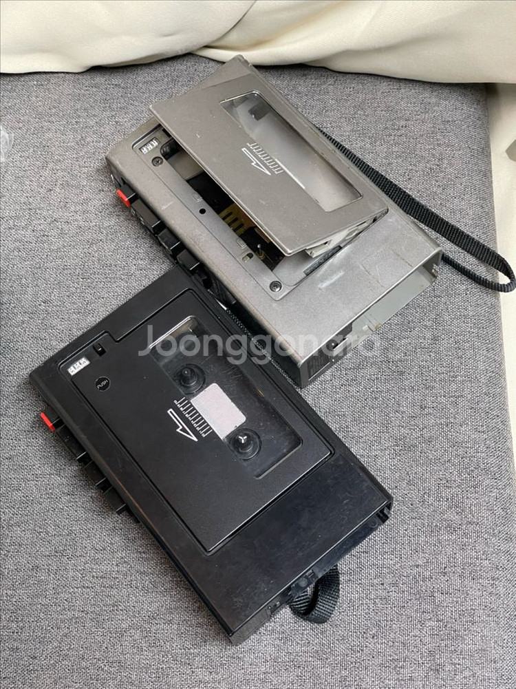 소니 SONY TCM-121 빈티지 워크맨 2개 세트로 팝니다. 기기의 배터리팩은 없습니다. 별도의 호환 아답터로 확인해 보니 두개모두 전원 들어오고 모터 돌아 갑니다. 블랙: 모터 돌아갑니다. 실버: 커버힌지가 없어서 열리는데 테이프를 넣어보니 이어폰으로 재생 소리 들립니다. 커버만 닫고 사용하면 재생용으로도 가능할것 같습니다.