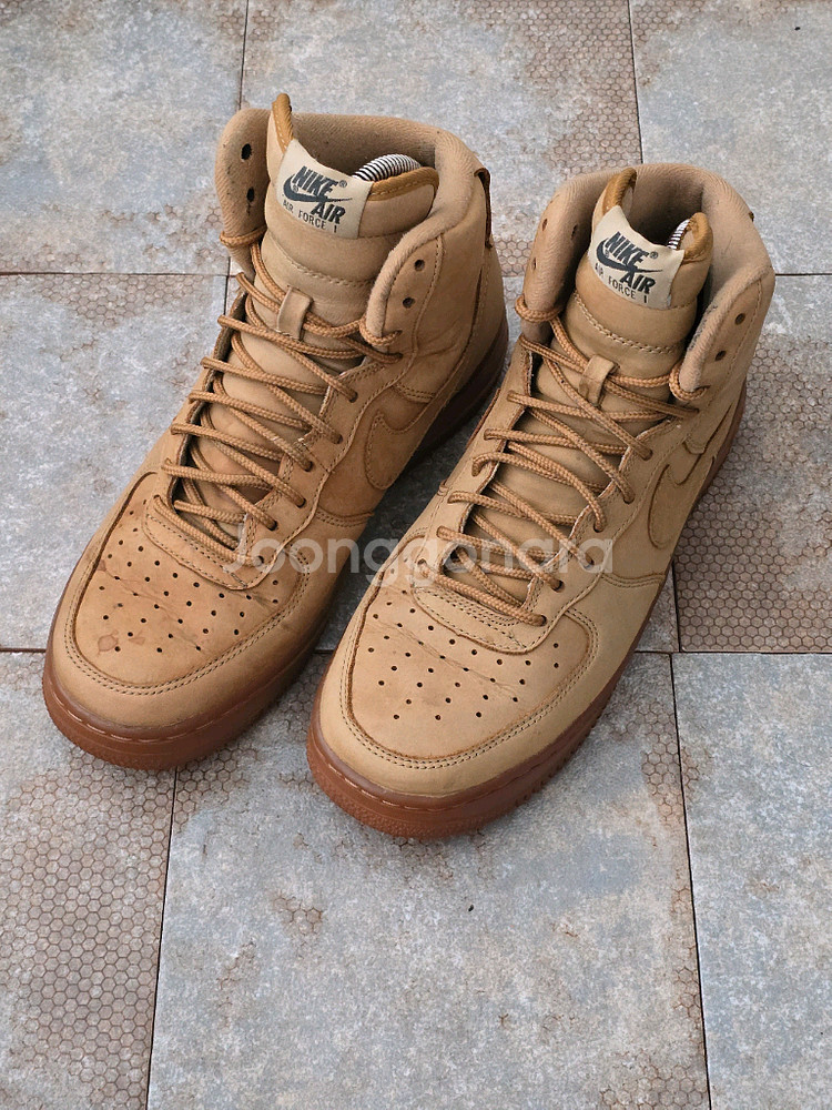 Size : 255/us 7.5(표기 사이즈) Condition : 7.8/10(새상품 기준) 사용감,잔염(사진참고) Made Years : 2015 Comment * 나이키 에어포스 1 하이 된장 모델입니다. *세탁 완료한 제품입니다.