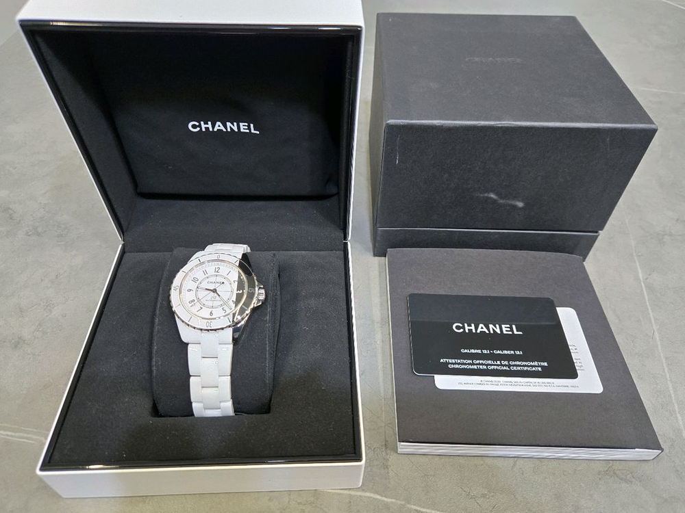 샤넬 J12 화이트 세라믹 시계입니다 22년5월 겔러리아에서 구입 했어요 38mm 북렛,개런티카드,케이스(가루날림있음) 케이스,밴드,글라스 모두 상태 좋아요 직접거래만 가능합니다.