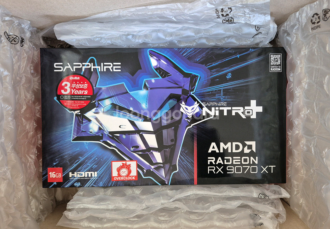 SAPPHIRE 라데온 RX 9070 XT NITRO+ OC D6 16GB 팝니다. 미개봉 1월30일 택배 받았습니다 직거래 충무로역이나 을지로3가역 가능합니다 (퇴근전까지)