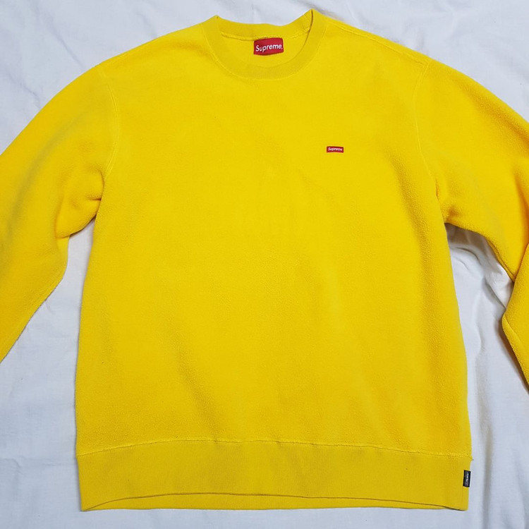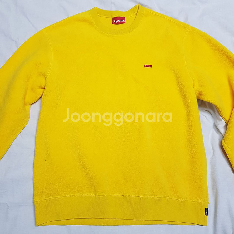 개인정보(거래정보)를 주고받는 행위는 사기에 노출될 수 있으므로 즉시 중고나라로 신고해 주세요슈프림 폴라텍 스몰박스 크루넥 옐로우 맨투맨 FW18 Supreme Polartec Small Box Crewneck Yellow 사이즈: L 실측 - 가슴단면 63cm 새제품 슈프림 정품 입니다 쇼핑백 스티커 포함