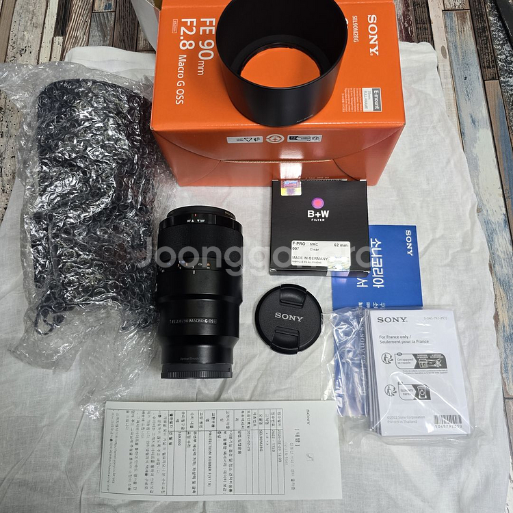 소니 FE 90mm F2.8 Macro G OSS 팝니다 (풀박) 2023년 2월경에 구입했지만 거의 사용한적이 없어서 전체 외관및 후드 , 아주 깨끗합니다 슈나이더 B+W F-PRO 007 MRC 62mm BW 필터 장착 되있는 상태 용산 소니 서비스센터에서 유상 점검및 수리 진행 다 해놓은 상태 입니다 직거래로 시간 조율하여 서울 전지역과 가까운 경기 직거래 가능합니다 (제가 갑니다, 다만 안성 같은 먼 지역은 못갑니다,,.) 연락처는 공일공 - 삼610- 구팔72 챗이나 문자, 전화로 부탁드립니다 택배 거래시 착불 노리턴 조건, 뽁뽁이로 잘 싸서 보내드립니다