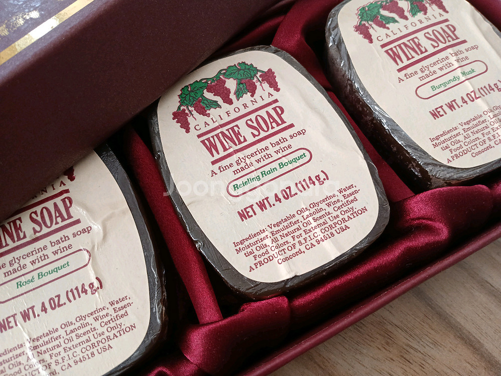 캘리포니아 와인 비누 3개 세트 팝니다. 미사용품, 20,000원입니다. 서울시 상계9동 청원고등학교 후문 또는 지하철 7호선 마들역에서 직거래 가능합니다. GS 반값택배 2,300원 가능합니다. 에눌, 네고 사양합니다.