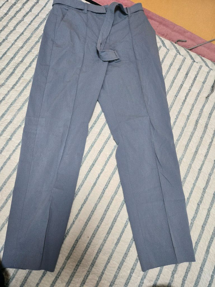 깔끔한 하늘색의 여성용 정장바지예요. . 비즈니스나 정장 스타일에 완벽하게 어울리는 아이템이에요. 66사이즈 여름바지입니다