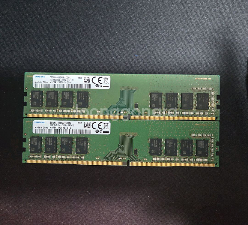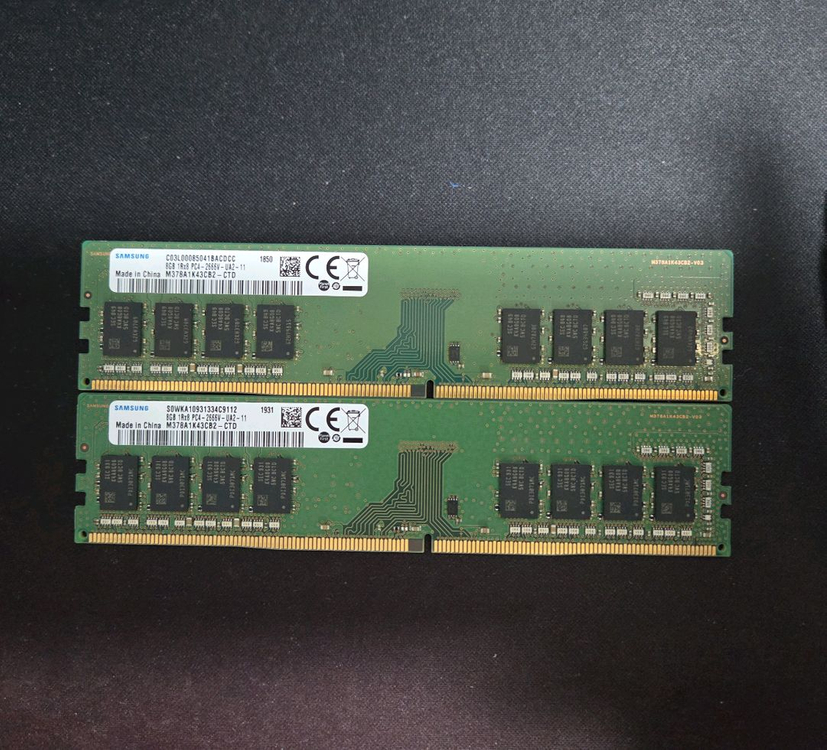 삼성전자 DDR4 PC4-2666V 8G 메모리 2개 한 세트입니다. 삼성 정품이고, 데스크탑에 장착해서 정상적으로 사용했던 제품입니다. 8G 두 개, 총 16기가 구성으로 판매합니다.
