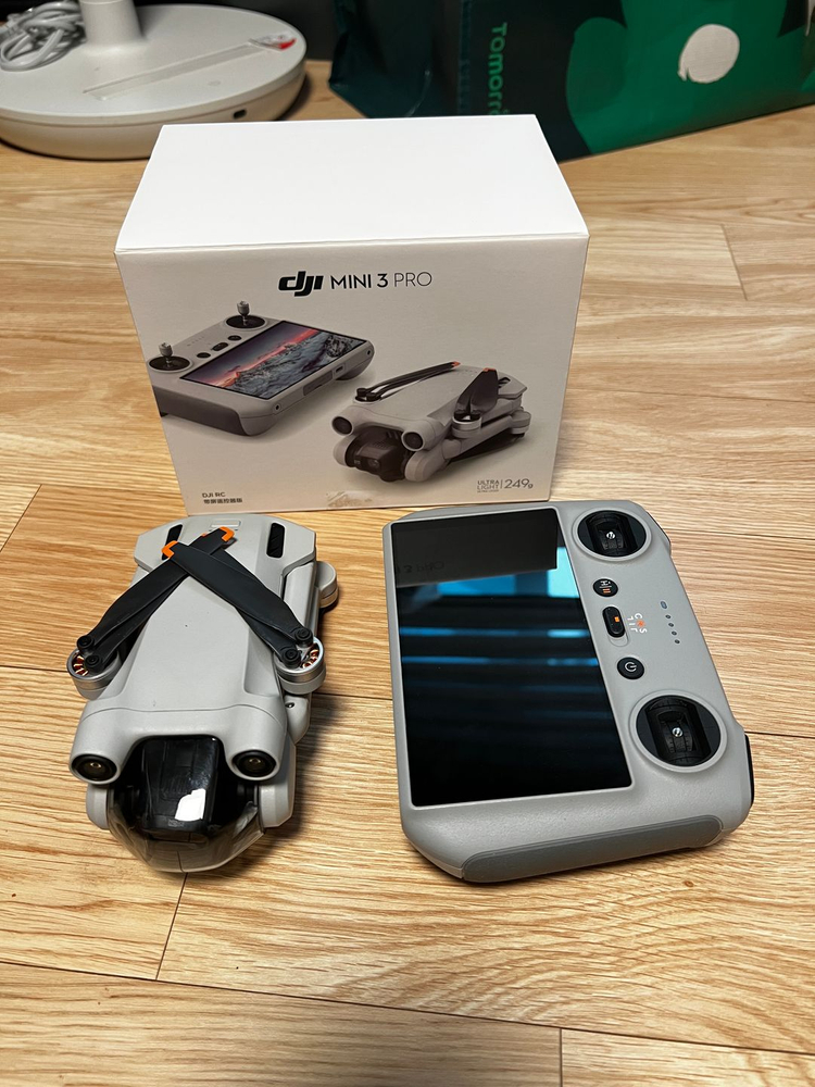 미니3 프로 드론 본체, 스크린 내장 컨트롤러, 기본 배터리 등이 모두 포함되어 있어요. 박스도 함께 있고 상태 양호합니다. 4K 동영상 촬영 가능하고 세로모드도 되서 입문용 이나 가벼운 작업용으로 완벽한 구성이에요! 사진에 대용량 배터리와 ND필터는 불포함 추가구매 해주세요 기본배터리 최대비행시간 34분 대용량 배터리 사용시 최대 비행시간 47분 동영상 촬영시 ND 필터 사용 필수 입니다. 사용안한거랑 화질 차이 심함 대용량 배터리 추가 구매시 +8만원 ND필터 추가 구매시 +4만원