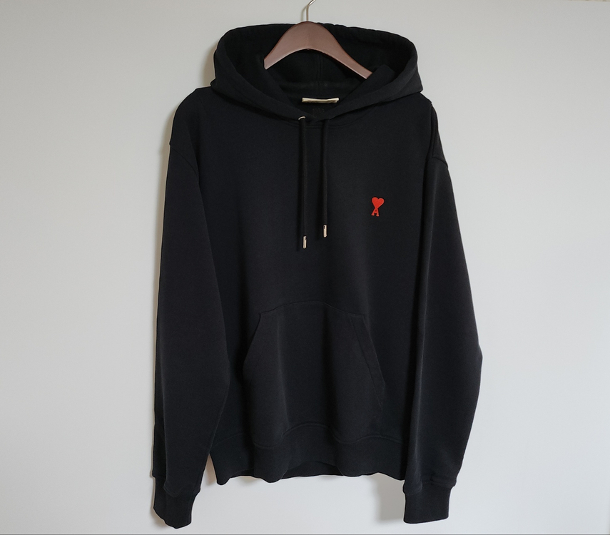L 아미 블랙 스몰 하트자수 남성 후드티 BFHJ008 730 이미지