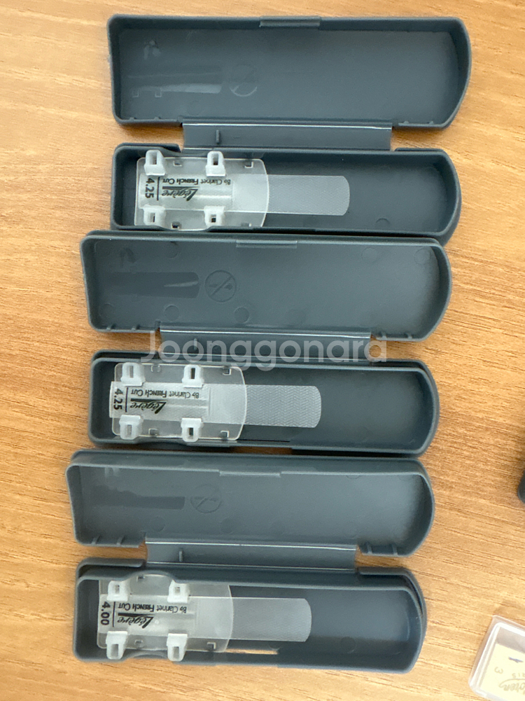 Legere 클라리넷 리드 French Cut입니다 4.25 사이즈 2개 4.00 사이즈 1개 있습니다 전부 딱 테스트용으로 한번 불어보고 보관해놨습니다 저는 유로피안컷으로 넘어가서 판매합니다 **개당 배송비포함 2.5만원 일괄구매시 5만원 **편의점 택배 가능합니다 (편하게 연락주세요)