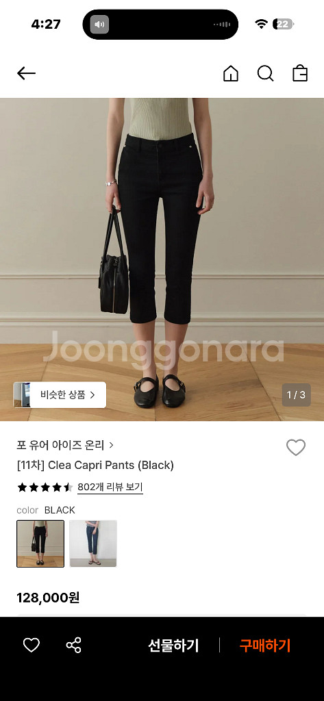 시에 sie 포유어아이즈온리 포유온 fyeo Clea Capri 팬츠 블랙 36새상품