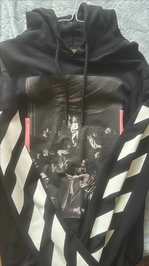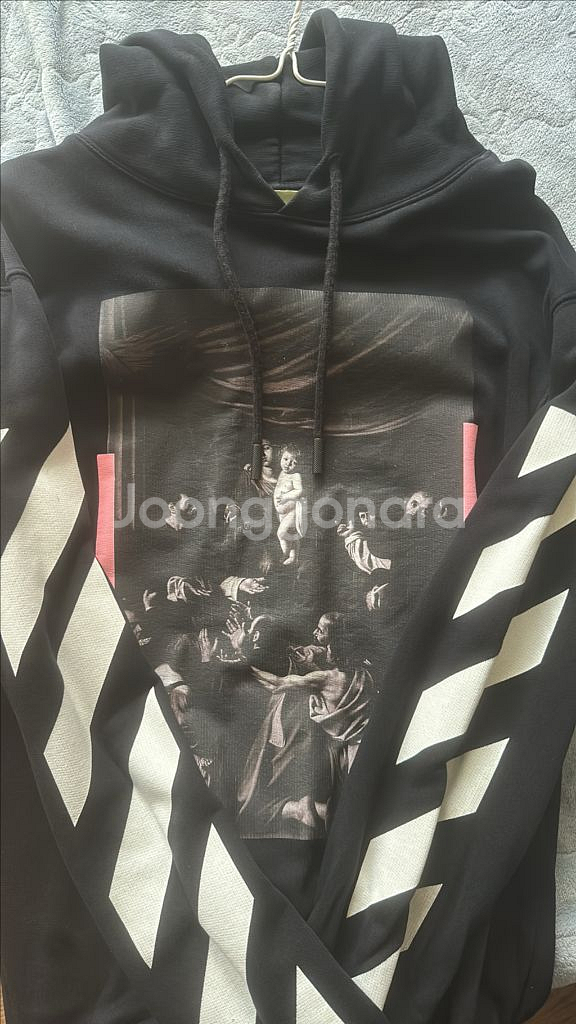 오프화이트 카라바지오 후드티 판매합니다 전체적으로 상태 양호한 중고 제품입니다.