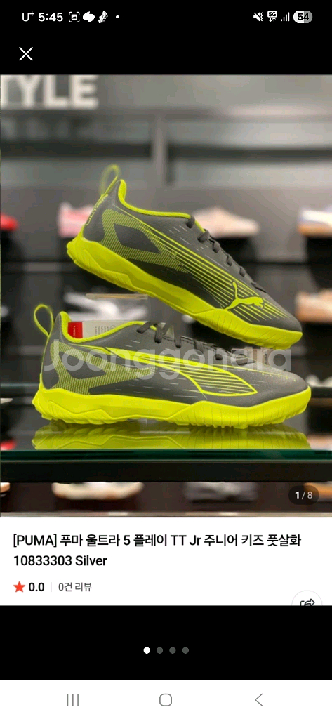 푸마 울트라 5 플레이 TT Jr 풋살화 새상품 220 푸마 울트라 5 플레이 TT Jr 풋살화입니다 회색과 형광색의 조합이 돋보이는 제품입니다 - 가볍고 민첩한 움직임을 제공합니다 박스는 없어요 택배비 포함 2만원