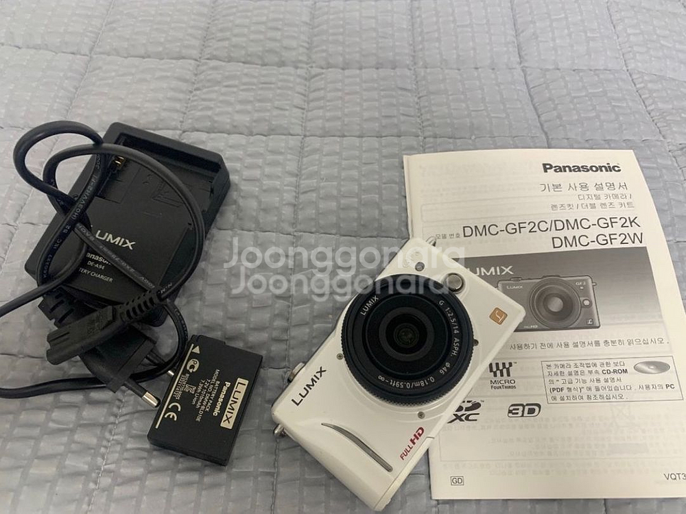 안녕하세요~^^ 루믹스 DMC-GF2 + 14mm렌즈 팝니다. 잔기스 약간 있으나 사진처럼 상태 좋은 편입니다. (액정 필름 붙어있음.) 렌즈 덥게가 없는 점 참고 바랍니다. (렌즈는 전혀 이상없음. 배송시 비닐, 고무줄, 뽁뽁이로 매듭하여 이상 없게 보내드립니다) 구성품: 본체, 정품 14mm렌즈, 정품 베터리, 정품 충전기&케이블 현재는 좀 찾기 힘든 14mm 단렌즈 구성입니다. 묵직한 셔터음이 일품입니다. 단렌즈의 촬영 감성용 추천드려요.