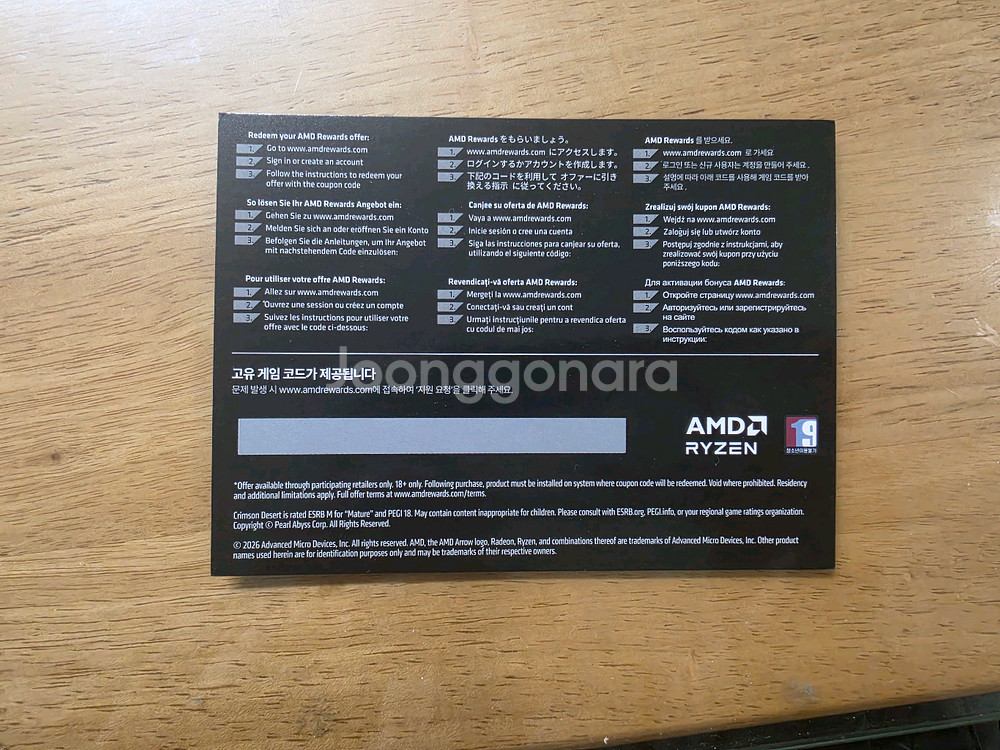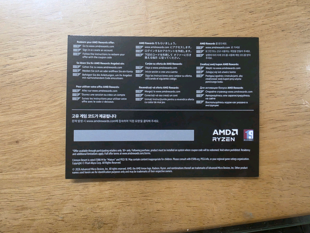 AMD 구매사은 붉은사막 게임코드 판매합니다. 라이젠 9000번대 X3D에서 리딤 가능합니다. 대리등록 불가합니다. 거래내역 많습니다.