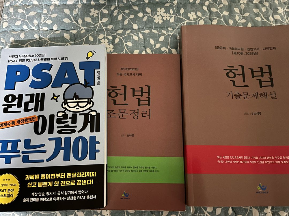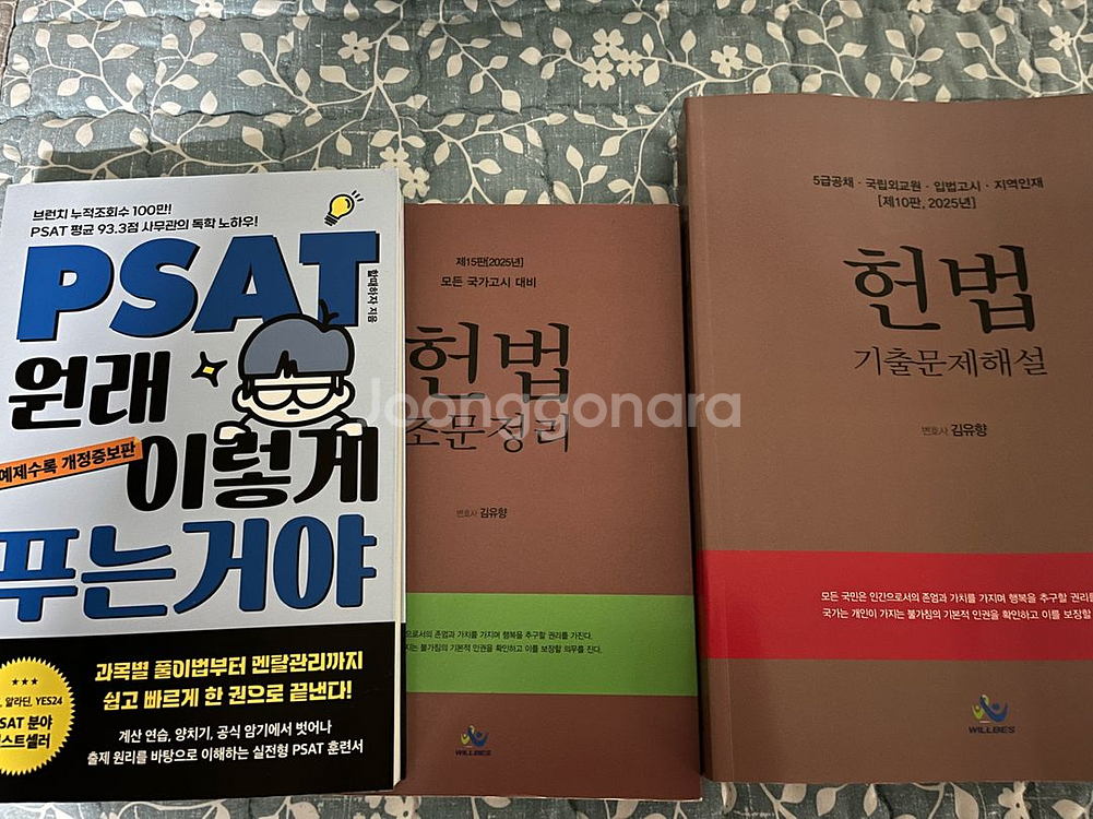 PSAT 원래 이렇게 푸는거야 (예제수록 개정증보판) - 14000원 김유향 헌법 조문정리 - 12000원 김유향 헌법 기출문제해설 (제10판, 2025년) - 38000원 TOEIC ETS 토익 정기시험 기출문제집 4 1000 LC - 16000원 ETS 토익 단기공략 750+ - 15000원 휴대폰으로 찍어서 사용해서 전부 필기 전혀 없고 깨끗합니다. 택배비는 별도 2500 입니다.