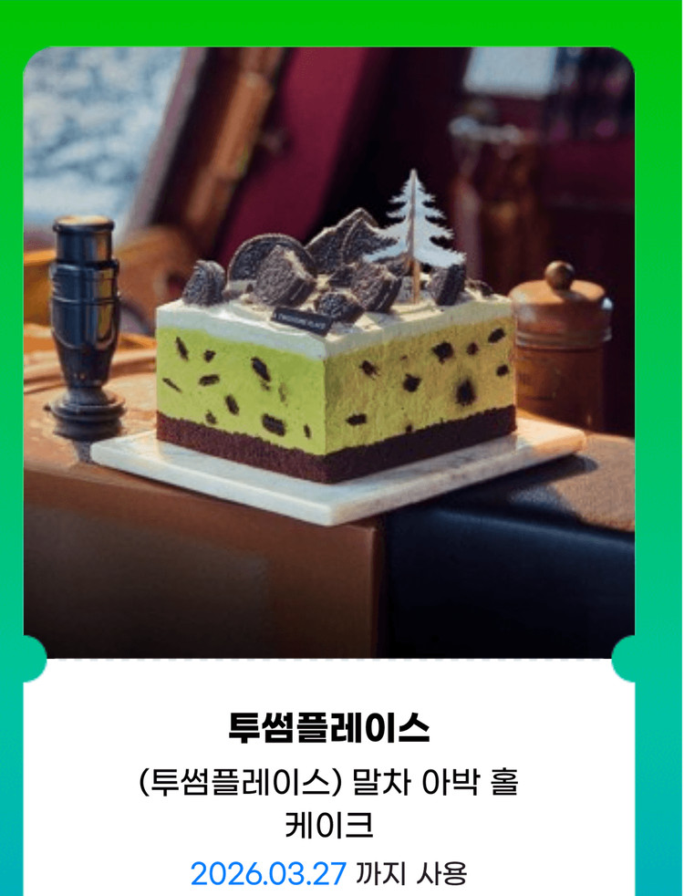개인정보(거래정보)를 주고받는 행위는 사기에 노출될 수 있으므로 즉시 중고나라로 신고해 주세요투썸플레이스 35000원 기프티콘 말차 아박 홀케이크 제품대신 다른상품으로 대체사용가능합니다 3월27일까지 사용기한있구요 입금확인후 문자나 이메일 편하신매체로 기프티콘사진 보내드립니다.