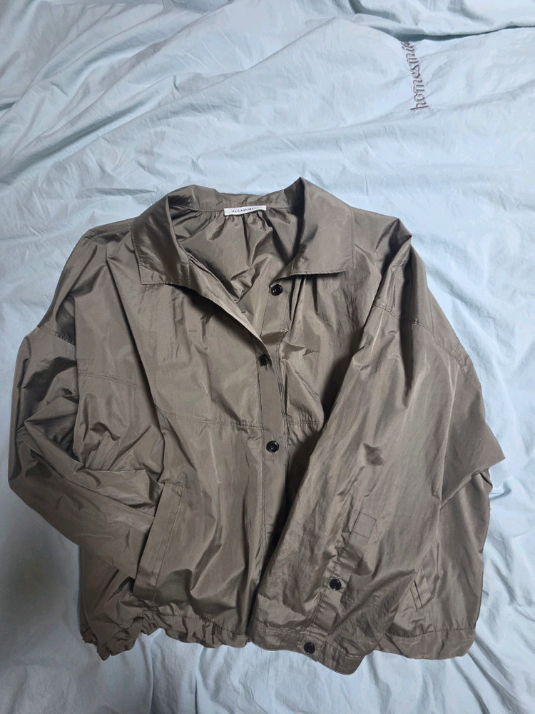 더캐시미어 바람막이 자켓이 활용도 높고 약간의 광택감 예뻐요 상태 좋아요 오버 가오리핏으로 여리여리해보이고 더캐시미어 색감 고급지지요 55,66가능 택포125000