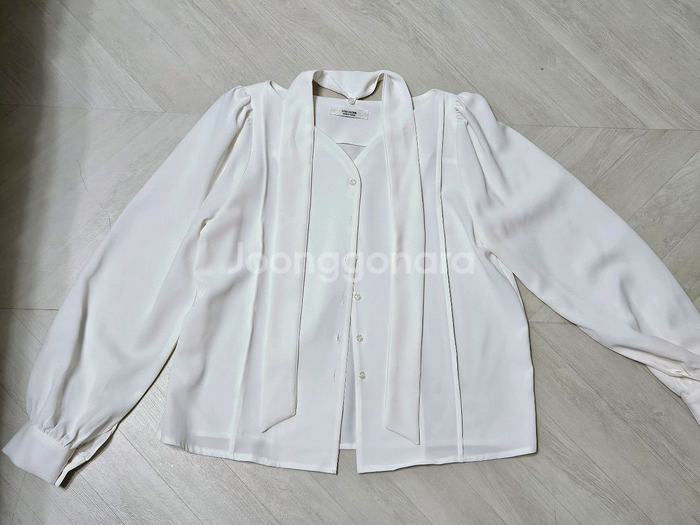 확대아이보리색 블라우스입니다 - 부드러운 소재로 제작되어 착용감이 좋습니다 - 타이 탈부착 가능 - 깔끔한 디자인으로 다양한 스타일링이 가능합니다 상표 옆에 작은 점 얼룩있음(예민하신분 구매 자제) 가슴둘레 47 기장 54 프리사이즈 사이즈문의 사양 반품.환불 불가