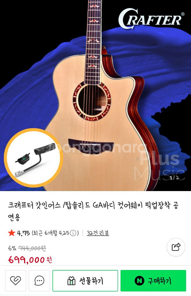 개인정보(거래정보)를 주고받는 행위는 사기에 노출될 수 있으므로 즉시 중고나라로 신고해 주세요크래프터 어쿠스틱 기타 모델입니다 - 픽업 장착 - 케이스 포함 -카포 포함 사놓고 한두번밖에 사용안했는데 보관할때 기타가 떨어져서 사진에 나와있는것처럼 좀 깨졌습니다..!ㅠㅠ 깨진거 말고는 다른 이상은 없습니다