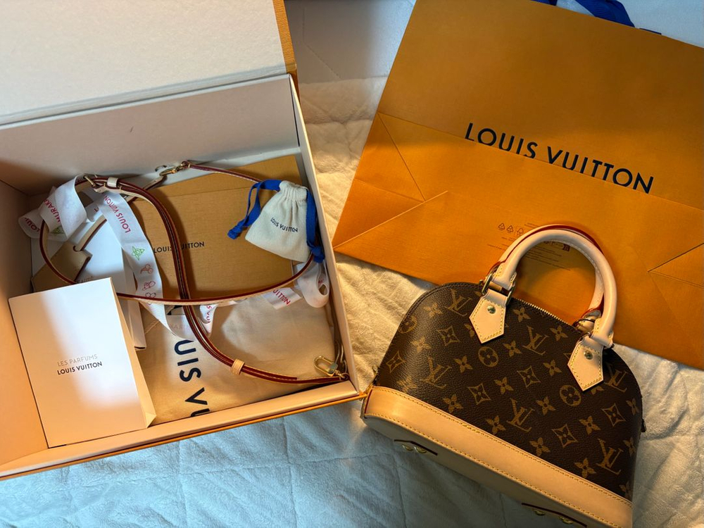 공식 루이비통 홈페이지에서 구매해서 보증서, 자물쇠, 더스트백, 박스, 종이백, 참, 크로스백 연결줄, 루이비통에서 주는 뷰티 까지 전부 풀셋입니다 정말 몇번 안들어서 눈에띄는 하자 없고 굳이 있다면 밑에 아주 약간 까짐, 안쪽에 흰색 스크레치? 같은게 있어요!(사진참고해주세요!)