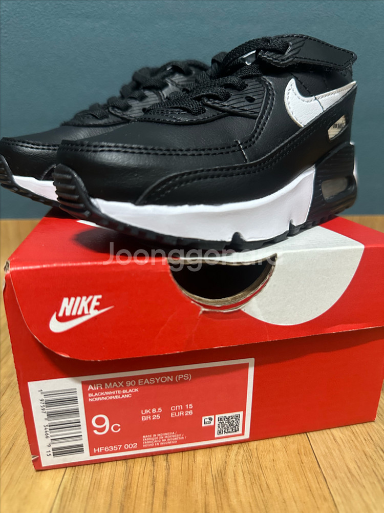 나이키 에어맥스 90 이지온 PS 키즈 운동화 블랙/화이트 색상입니다 - 사이즈는 9c 150mm입니다 - 겉창의 유연성을 향상시켜 편안한 착화감을 제공합니다 - 폼 중창이 가볍고 탄력있는 쿠셔닝을 제공합니다 박스채 새상품입니다 아기가 택을 잘라서 택없는 새상품입니다. 매장에서 구매했어요