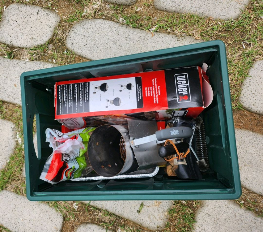 연락처 ㅡ010.7398.5788 웨버점보47플러스 판매가ㅡ200,000원 구성품은 -침니스타터 대형,차콜바스켓 세트,드립 팬(기름받이)대,차콜 브리켓5kg 미사용분 및 절반 있음,점화 큐브(2/3 있음) ,훈연칩 사과(2/3 있음),청소용브로쉬 사용감 있음,수납가방,사진에 접이식 보관 박스 서비스. 사용감은 적으며 생활기스는 있음. 직거래 또는 택배가능 택배 원할시 안전거래는 안하며 입금후 제품발송가능. 택배 원할시 로리턴조건이며 착불임