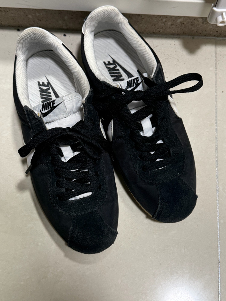 나이키 코르테즈 블랙 색상 240사이즈입니다. 사진에서 보시는 것처럼 사용감은 조금 있습니다. 평소에 235-240 신으시는 분들께 추천드려요! 문의 없으시면 바로 안전결제해주시면 됩니다!