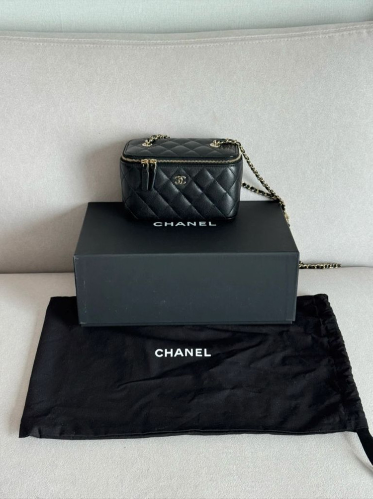 정식명칭은 샤넬 체인 코스메틱 케이스입니다 캐비어 소재이고 실착용 5번입니다 안에 거울 보호필름도 그대로 붙어있습니다 기스나 까임 전혀 없어요 이너백이랑 체인쇼트너도 같이 드립니다 박스, 더스트백, 영수증, 인보이스, 쇼핑백 구성품 모두 있습니다 제 블로그 오셔서 확인도 가능합니다