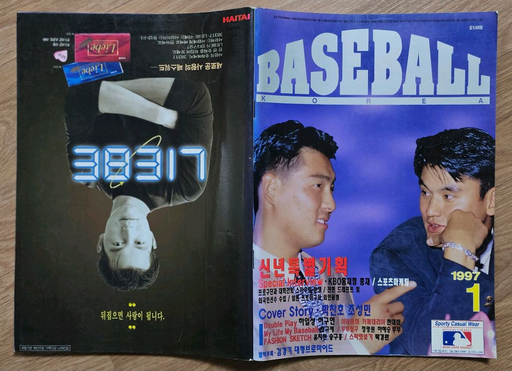 1997년 1월호 월간 베이스볼 코리아 잡지 표지 모델 미국 프로야구 LA 다저스 박찬호 선수, 일본 프로야구 요미우리 자이안츠 조성민 선수 프로야구 기사 화보 수록