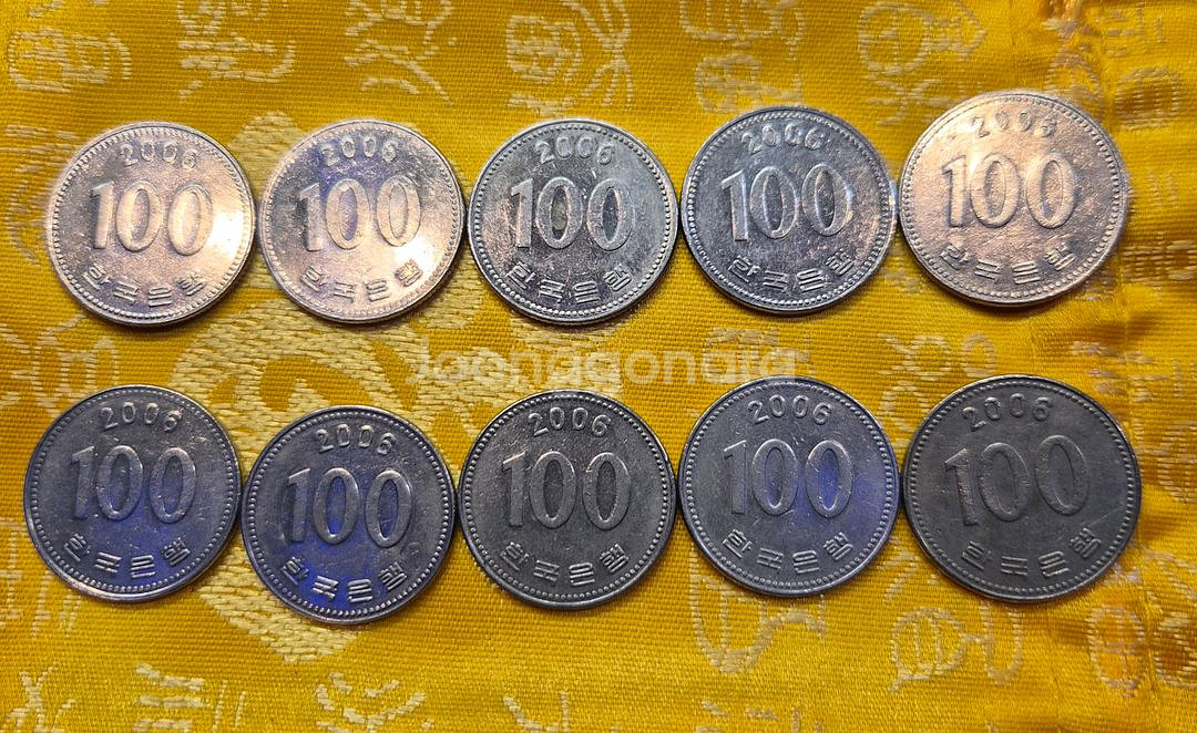 2006년 100원 동전 10개 세트로 구성되어 있습니다. 수집용으로 보관해 온 100원 동전이며, 상태는 사진과 같습니다. 희귀년도인 2006년 100원 10개 한 번에 가져가세요! 별도 문의 없으시면 바로 안전결제 부탁드려요!
