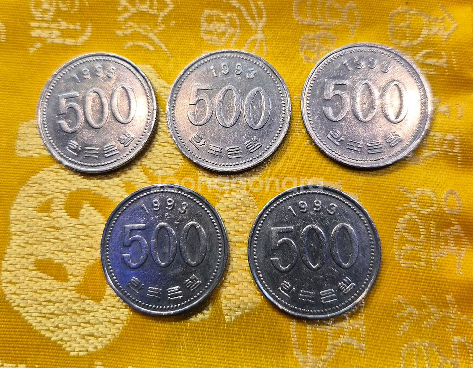 1993년에 발행된 500원 동전 5개 세트입니다. 수집용으로 보관해 온 동전들이라 상태 좋습니다. 사진 보시고, 희소성 있는 500원 동전 수집하세요! 별도 문의 없으시면 바로 안전결제 부탁드려요!