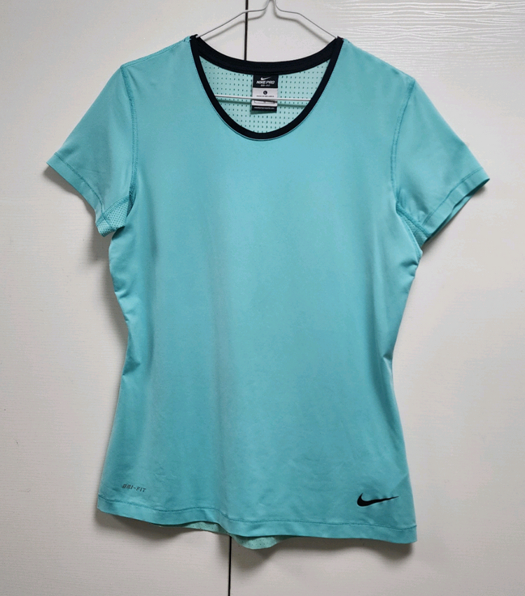 나이키 프로 DRI-FIT 여성 상의입니다. 흡습속건 기능이 있어서 땀을 빠르게 흡수하고 건조시켜 쾌적하게 입을수 있어요. 시원한 민트색으로 운동할때도 아주 좋을것 같습니다. 뒷면은 매쉬소재로 제작 되었어요. 사이즈는 L 로 표기되어 있고 신축성이 좋아요. 깨끗하니 사진 잘 살펴보시고 연락주세요. 구매시 반품은 불가하니 신중히 선택해 주시기 바랍니다.