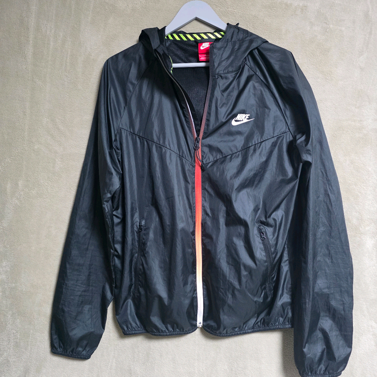 나이키 윈드러너 바람막이 블랙 색상 L 사이즈입니다 - 폴리에스터 100% 재질로 가볍고 활동하기 편해요 - 후드가 달려있어 갑작스러운 비에도 대비할 수 있습니다 - 생활 방수 기능이 있어 가벼운 비나 습기로부터 보호해 줍니다 - 가볍고 편안해서 운동할 때나 일상생활에서 입기 좋아요