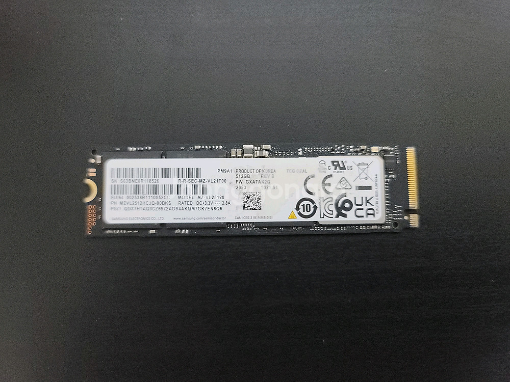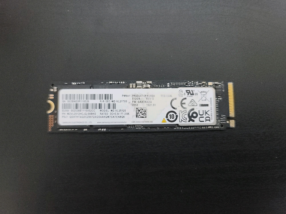 삼성 PM9A1 gen4 512gb 노트북 업글하려고 뺏는데 위에 붙어 있는 스티커 제거하다보니 조금 흔적이 남았네요. 사용량 별로 없고 좋습니다.