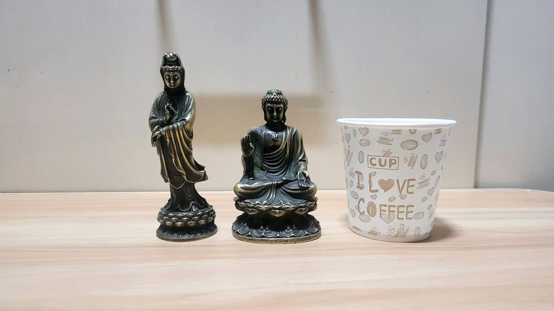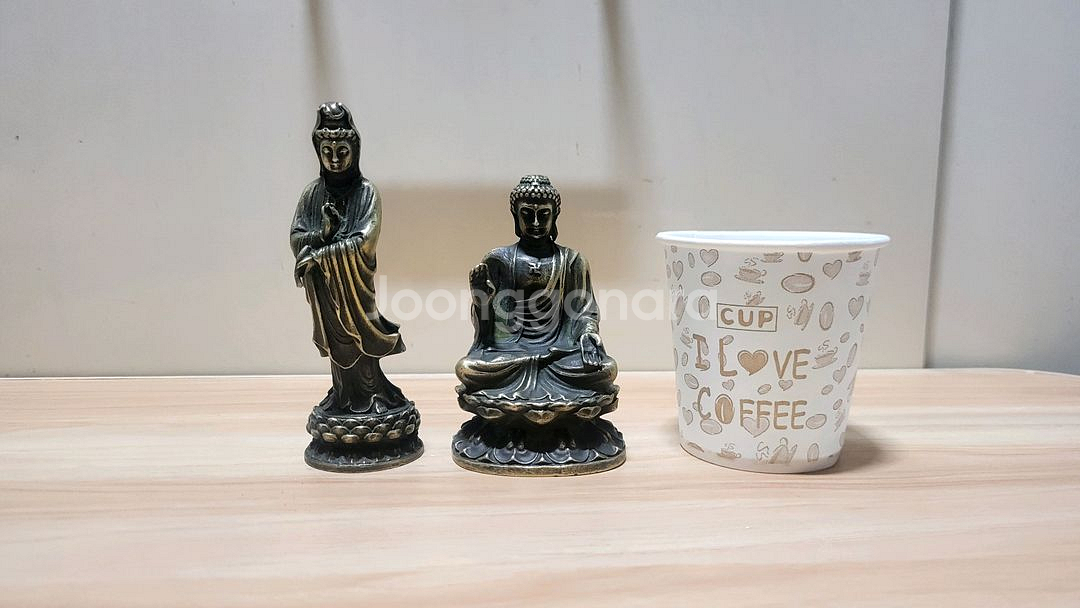 불교 인테리어 황동재질의 석가모니 부처님과 관세음보살 부처님 입니다. 크기 가늠하실수 있도록 종이컵하고 같이 사진 찍어놨습니다. 2종 일괄 60000원 입니다. 석가모니 부처님 높이 10cm, 무게 300g 관세음보살 부처님 높이 11cm, 무게 195g 대중교통으로 오시면 2호선 신대방역이나 구로디지털단지역에서 직거래 가능합니다. 자차로 오시면 잠깐 주정차 편한주소를 말씀드리겠습니다. 택배 원하시면 택배비 (일반 택배는 3400원, 편의점 반값택배는 2,400원) 별도입니다.