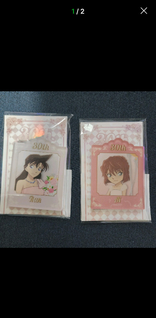 명탐정 코난 30주년 기념 아크릴 마그넷 포토카드 세트 2종 일괄 (모리 란, 하이바라 아이) 단순 개봉 입니다. 중고 제품인 관계로 구매후 환불/교환 어려운 점 양해 부탁드리겠습니다