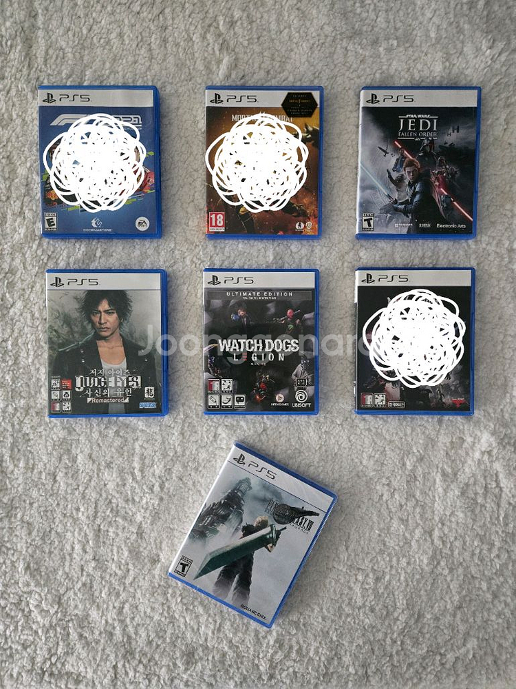 📌 일괄 구매 시, 100,000원 📌 개별 구매 시, - 스타워즈 제다이 오더의 몰락 : 35,000원 - 저지아이즈 사신의 유언 리마스터 : 18,000원 - 와치 독스 얼티밋 : 18,000원 - 파이널 판타지 7 리메이크 인터그레이드 (북미판 미개봉) : 55,000원 📦 거래 : 택배거래 only / 전 제품 무료 배송 (CJ택배)