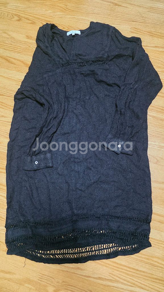사용감 있어요. 소재가 비스코스인데 톡톡한 린네 느낌 나요. 원래 한두번 입어도 일어나는 소재인데 자연스러운 느낌으로 필링 아니고 뜯김 있어요. 선물 받아서 정품 여부 몰라요. 툭 떨어지는 스타일이고 가슴 위 스커트 하단, 팔에 펀칭 되어 있어서 이너 입거나 그냥 노출 하시면 돼요. 실측은 대략 가슴반 56 총장 90 편의점반값택배 포함 2만원