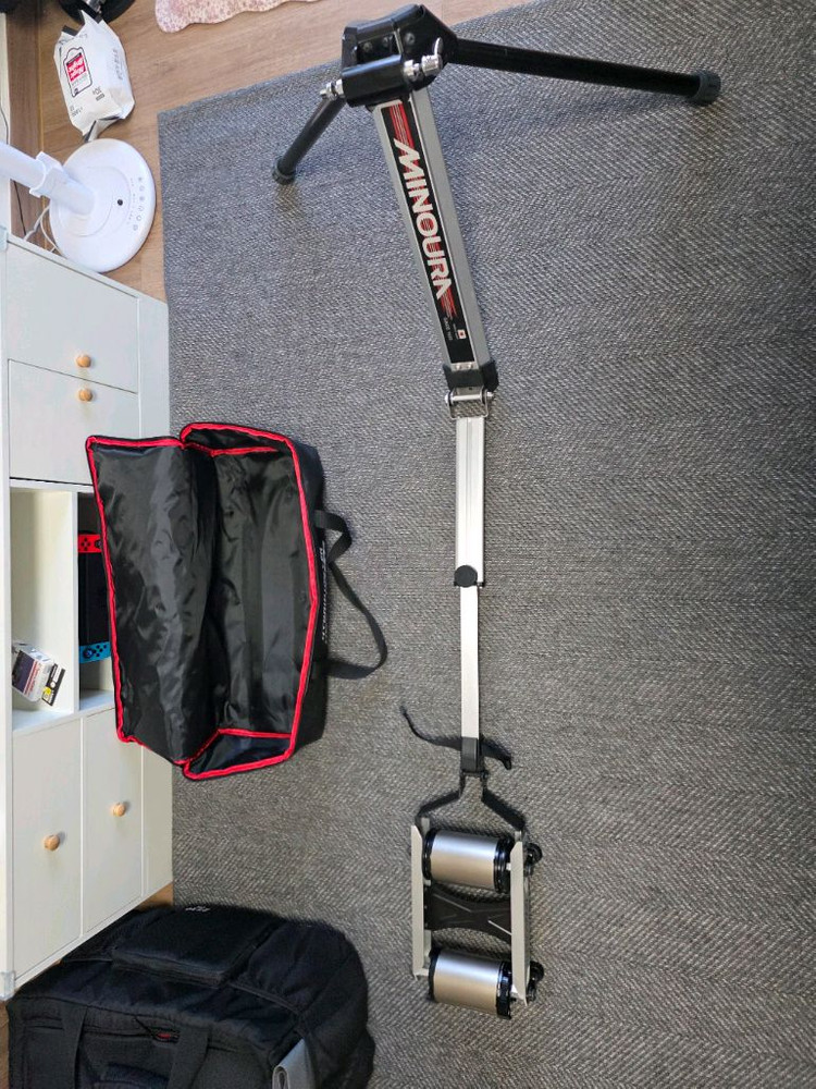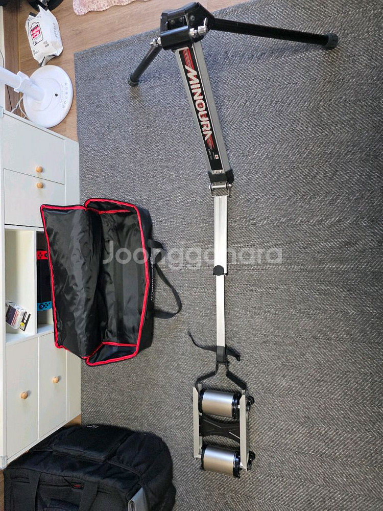 미노우라 FG220 자전거 롤러 판매합니다 실내에서 자전거 훈련하기 좋은 제품입니다 구매 이후 갑작스런 교통사고로 허리를 다치게 되어 보관만 해둔 깨끗한 상품입니다. 전용 가방도 포함되어 있어 보관 및 이동이 편리해요 대부분의 모든 자전거로 사용 가능하며, 휠베이스 930~1200mm 범위의 자전거에 사용할 수 있습니다 접이식 디자인으로 공간 활용도가 높고 설치 및 해체가 간편합니다 일본 미노우라 정품입니다!!