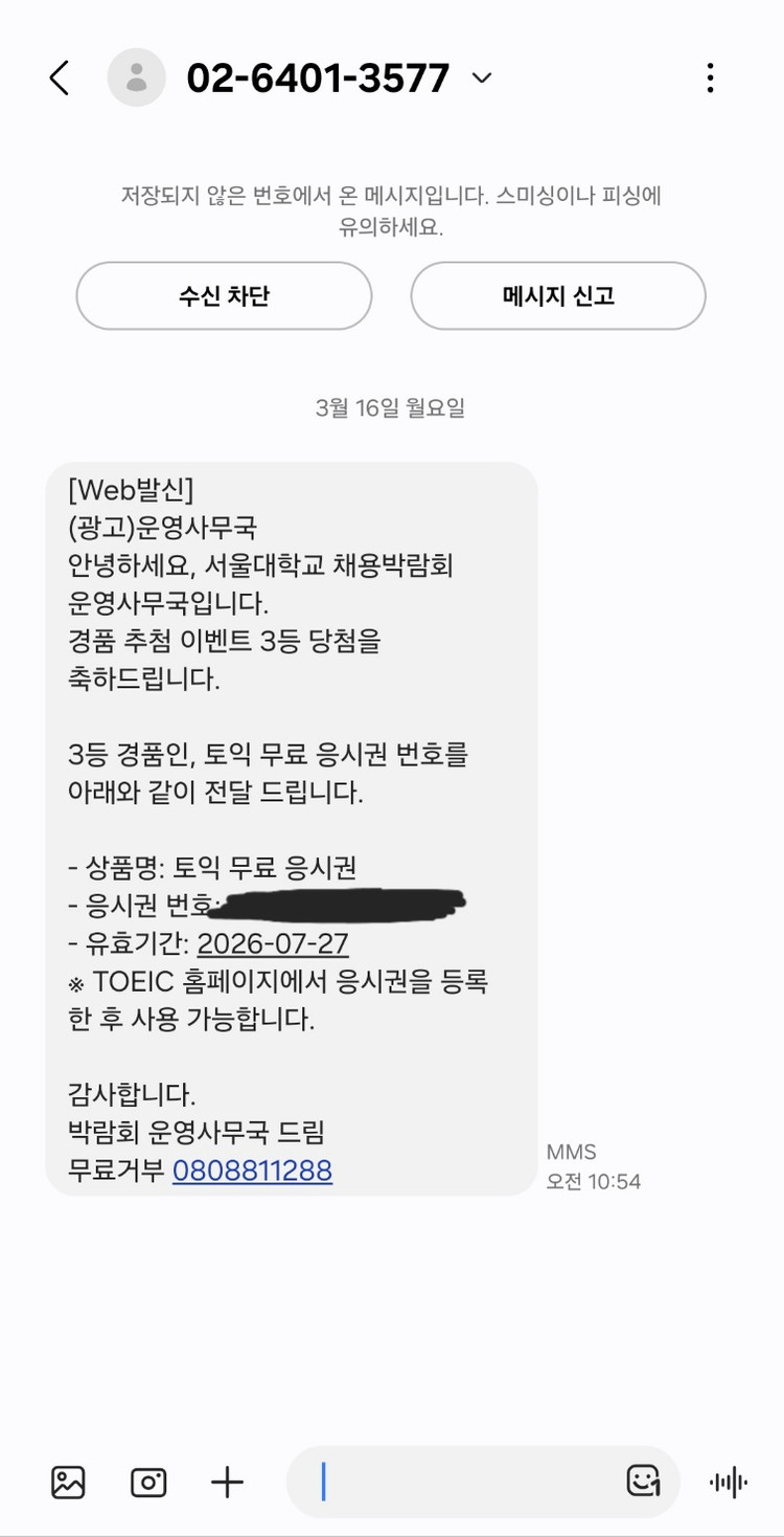 안녕하세요. 대학교 취업박람회 경품으로 토익 무료 응시권을 받았는데 제 전공 상 시험 칠 일이 없어서 팔려고 합니다. 토익 홈페이지에 응시권 번호 등록하시면 바로 사용 가능합니다.