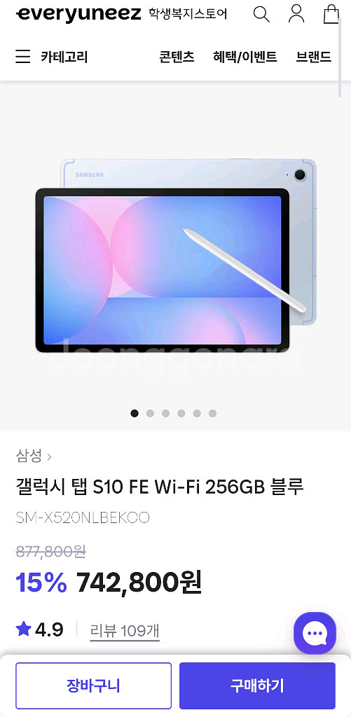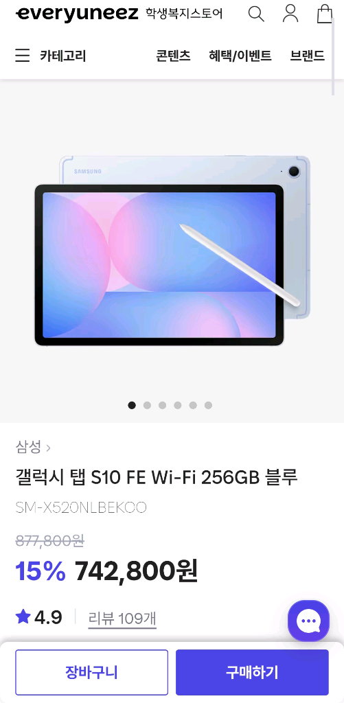 갤럭시탭 s10fe Wi-Fi 256GB 블루 미개봉