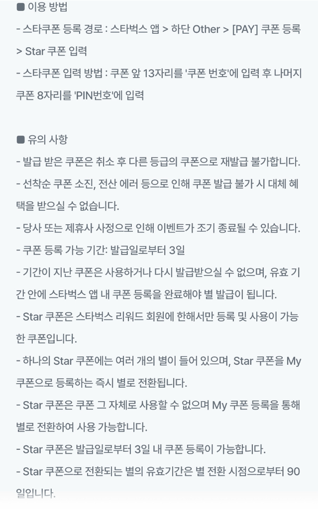 스타벅스 별 리워드 12개(3개x4)