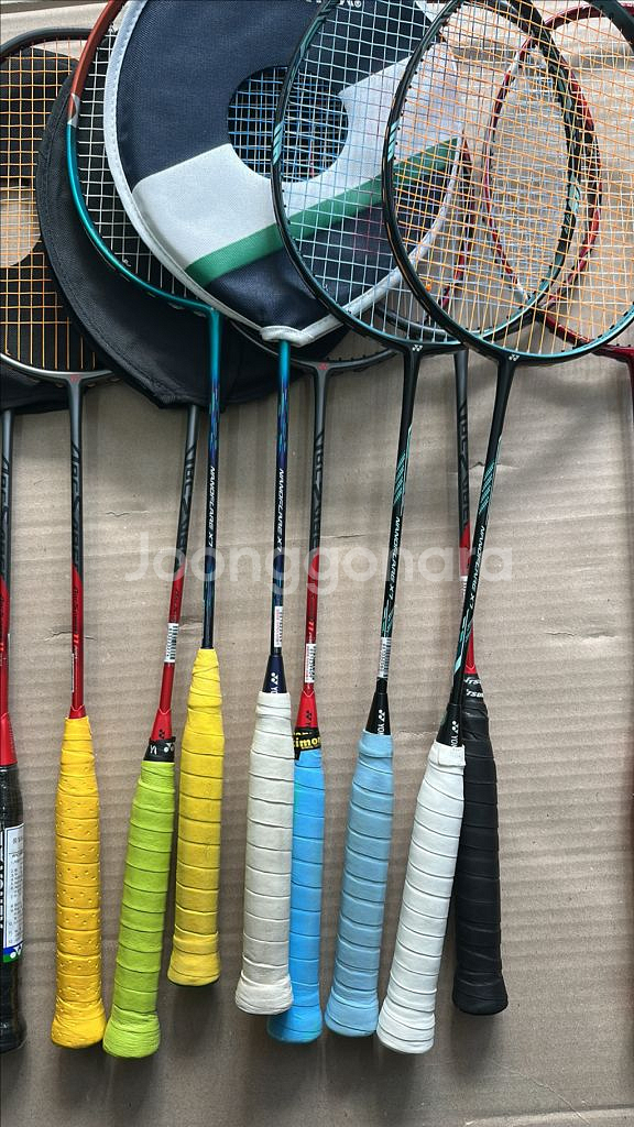 개인정보(거래정보)를 주고받는 행위는 사기에 노출될 수 있으므로 즉시 중고나라로 신고해 주세요다양한 색상의 배드민턴 라켓들이에요. 사용감은 있지만 상태 양호하고 여러 개 있어서 필요하신 분께 저렴하게 드려요! 신동급. KR정품 일본산 입니다