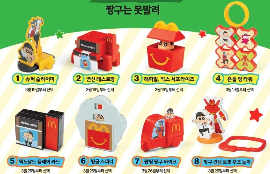 짱구 크레용 신짱 맥도날드 해피밀 4종 미개봉 미사용 새상품