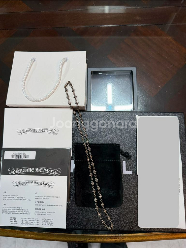 크롬하츠 정품 신형 타이니크로스 25인치 목걸이 팝니다.!! 당연히 정품이구 정품보증서도 발행하여 함께 드리겠습니다. 이 제품은 아쉽지만..인보이스를 분실하여 하는 수 없이 일부 구성품 포함과 정품보증서 발행으로 함께 판매합니다. 정품이니 가품 걱정은 안하셔도 됩니다^^* 그리고, 구형 제품이 아닌 신형 제품입니다. 퀄리티가 남다릅니다. 지금 온라인에서 타이니목걸이 20인치가 1000만 원 가까이 합니다.!! 제꺼는 25인치에 가까운데 그에 비하면 가격적인 부분에서는 메리트 있다고 생각합니다. 심지어 이 목걸이는 크롬하츠 전국 매장을 다 돌아다녀도 나오지도 않고 있고 나오더라도 그냥 못산다고 보시면 됩니다. 이미 구매자는 정해져 있는지라..구매를 하고싶어도 돈이 있어도 진짜 어쩔 수 없는 겁니다. 그리고, 이 목걸이 가격대도 이제는 상당히 인상되어 25인치 짜리로 하신다면 1000만 원은 이제 훨씬 넘어갑니다. 온라인에서 저 가격이면 백화점은 더 비싸다고 보시면 됩니다. 25인치라 잠금상태에서 그대로 착용하고 벗는데 아주 편리합니다. 그래서 24인치가 가장 인기가 좋습니다. 이참에 득템해 가셔요^^*착용해 보시면 너무나도 이쁩니다.너무 길다 싶으시면 수상해서 인치 줄여서 착용하셔도 되니깐 길다고 너무 걱정 안하셔도 되는 부분입니다. 짧으면 더 걱정이지 길다고 걱정될 부분은 아닙니다^^;; 남녀공용이라 남녀노소 누구나 착용하셔도 되시고 과하지 않기 때문에 너무 이쁘고 소장성이 상당히 있는 아이템입니다. 요즘 크롬하츠가 정말 대세라서 그런지 인기도 많을 뿐더러 너무 이뻐요^^* 팔기가 너무나 아까우나..명품들 하나 둘 정리하고 있어서 판매합니다. 작오로 20인치짜리가 백화점판도 아닌데 현금가 900만 원 정도 하네요..24인치면 1200만 원대 가까이 하는 겁니다.!! #가격 많이 내렸습니다. 쿨거래해주실분~~~ 구매하실 분은 편하게 연락주세요^^* 공일공 이이이육 육칠팔팔
