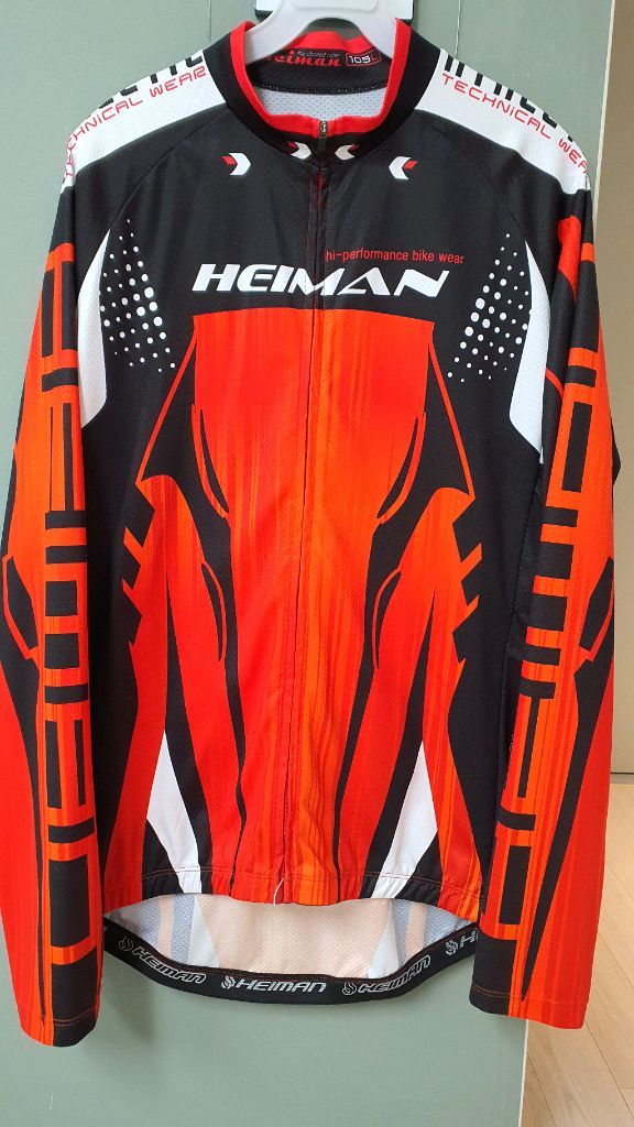 HEIMAN 자전거져지 판매합니다. 정품! 봄가을용! 기능성스판! 드라이완료! 사이즈 XL 105호 실측! 가슴단면 53cm 총장길이 72cm 색상 사진색상 가격 27,000원 문의 주세요~ 중고 특성상 교환, 반품 되지않으니 신중한 구매부탁드립니다