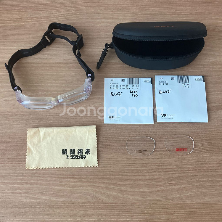 일본 타카라 안경에서 맞춤 제작한 ZETT 정품 ZT-301 스포츠 고글입니다. 축구, 농구, 야구 플라잉디스크 풋살 운동용으로 사용 가능하며 프레임이 튼튼하고 밴드 조절이 가능해 착용감이 매우 안정적입니다. 사용감이 적고 프레임이나 밴드 상태 매우 깨끗합니다 (사진 참조). 고글 본체 + 전용 하드 케이스 + 전용 안경 닦이 + 미사용 니콘 투명 1.60 UV 렌즈 (NIKON SV160AS) 2구 --------------------------------------- 물질 구성: 폴리아미드 수지, 엘라스토머 수지(얼굴 쪽) 상품 설명 ZT-301 기어는 활동적인 주니어를 위한 안전하고 신뢰할 수 있는 스포츠용 아이가드입니다. 스포츠 중에도 흔들림 없이 집중할 수 있도록 개발되었으며, 넓은 시야와 안전하고 편안한 착용감을 제공하는 다양한 기능을 갖추고 있습니다. 프레임은 충격에 강하고 완충성이 뛰어나며, 얼굴 패드가 눈가를 부드럽게 지지합니다. 사이즈 조절이 가능한 밴드는 땀이 나도 위치가 흔들리지 않도록 고정되어, 운동 중 불편함을 최소화하고 스포츠를 더욱 즐겁게 만들어 줍니다. 시력 교정용 렌즈나 무도수 렌즈 모두 사용 가능하여, 시력이 나쁘지 않아도 눈 보호용 또는 먼지 방지용으로 추천됩니다. 또한 매장에서 선택한 처방 렌즈로 교체할 수도 있습니다. 프레임 소재 • 전면: 폴리아미드 수지 • 얼굴 패드: 엘라스토머 수지(피부 접촉면), 폴리아미드 수지(프레임 연결면) 렌즈 정보 • 얇은 비구면 1.60 (NIKON SV160AS) • 무색, UV 차단 기능 포함 사이즈 정보 • 렌즈 너비: 53mm (2.1인치) • 렌즈 높이: 35mm (1.4인치) • 브리지 너비: 14mm (0.6인치) • 전체 높이: 43mm (1.7인치) • 다리 길이: 1mm (0.5인치로 표기, 오타 가능성 있음) • 제조사 표기 사이즈: 53–14 색상 프레임: 4가지 색상 (블랙, 무광 블랙, 클리어 그레이) 렌즈: 투명 (UV 감쇄율 있음)