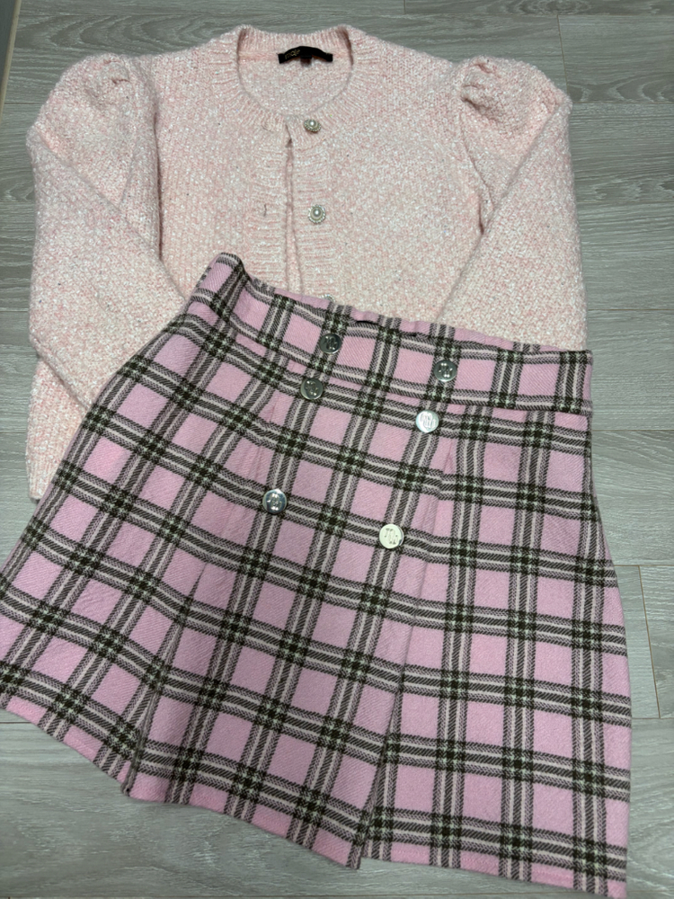 36사이즈 치마는 사놓고 사이즈 미스로 택만 떼고 못입은 새상품이구요 가디건은 1사이즈입니다 공홈에 같이 디피 되있던게 예뻐서 셋트처럼 구매한거예요 이염이나 찢김 없이 상태 좋지만 예민하신 분은 피해주세요 택포가격입니다
